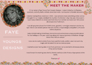 If you are interested in showcasing your art, jewelry, unique handmade items…Please reach out to Amy at busiasxoxo@gmail.com.
