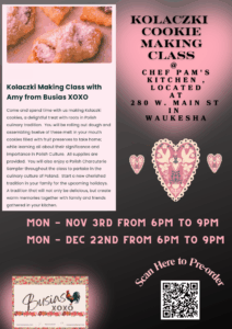 November 3 Kolaczki Cookie Making Class 6PM to 9PM @ Chef Pam’s Kitchen (290 W Main Street – Waukesha, WI)
